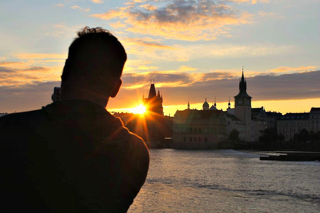 Now let me give you some fair warning about early mornings in Prague, you won't be the only ones out. On our walk to the bridge we ran into the occasional pigeon, some photographers, a few workers starting their day, and one other thing, drunk people. Now there were not a ton, but with the beer being so inexpensive here we did run into some people who were inebriated. When I say drunk, I'm not talking about your run of the mill tipsy person, I'm talking about the people who fought the urge to go to sleep all night just so they could have a good time until the sun came up. I'm talking about someone we came across right after I took this photo above. Around the corner we saw a "full moon" and as we approached we saw a young man completely naked and about three of his friends laughing and videotaping the whole ordeal. This may give you an idea of how empty the streets are, empty enough that he could walk fully naked down the center of a normally tourist - filled road (also how drunk he was). We had no other recourse but to laugh and avert our eyes as we passed him. Still cracking up we came across the Charles Bridge.